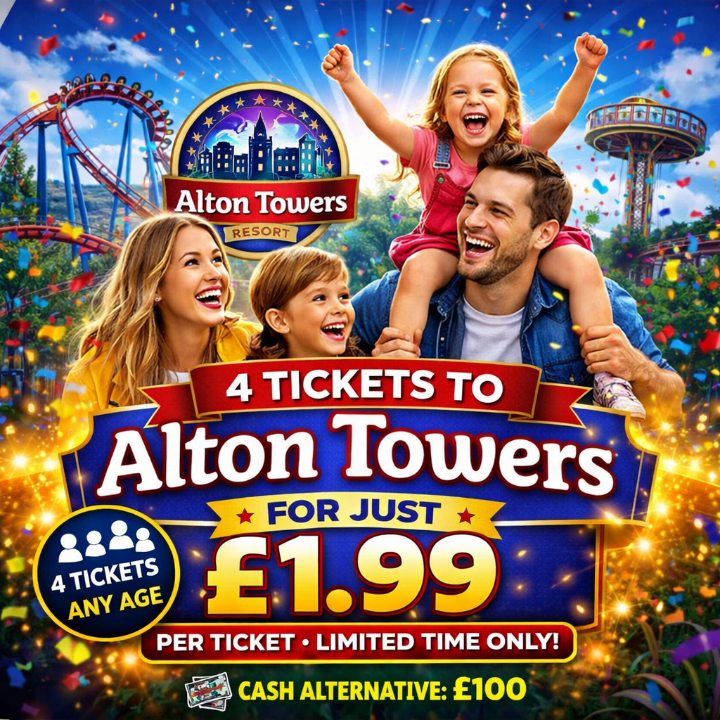 Be in with a chance of winning 4 tickets (ANY AGE, ANY DATE) to Alton Towers Resort β€” perfect for a family day out or a trip with friends! πŸŽ‰πŸ‘¨β€πŸ‘©β€πŸ‘§β€πŸ‘¦